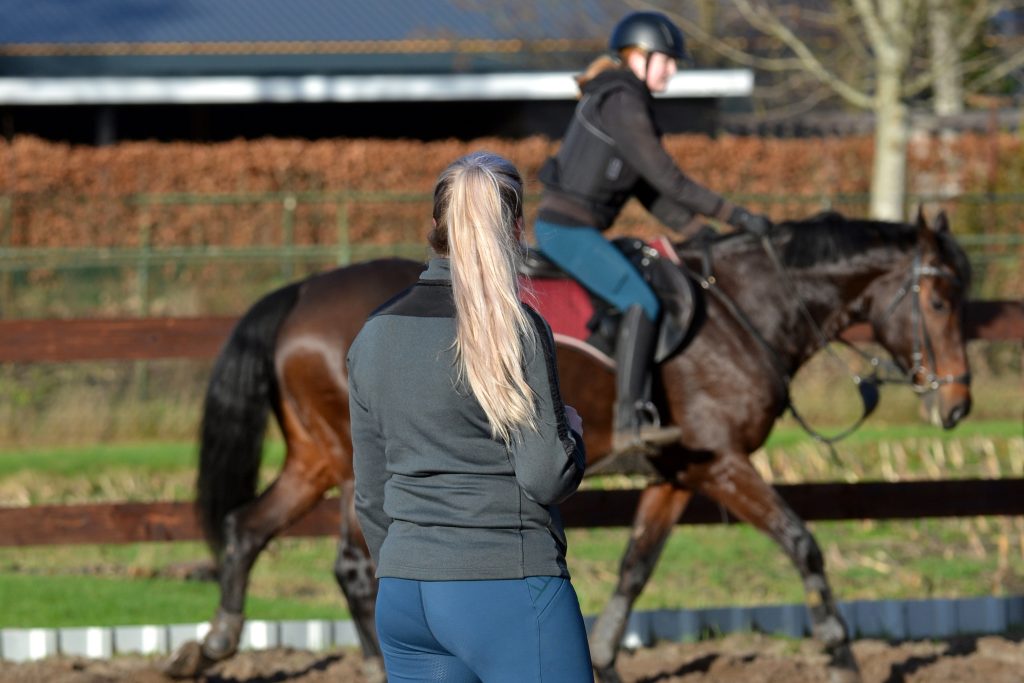 Hoewel ik zelf internationaal op 1.40m niveau spring, ligt de focus op een sterke dressuurmatige basis. Onder het zadel werk ik met jou en je paard aan dezelfde principes als aan de hand: ontspanning, balans, correcte spieractivatie en duidelijke communicatie. Of je nou dressuur rijdt, recreatief rijdt of liever springt of crosst, een goed fundament maakt je paard gezonder, sterker en fijner te rijden. Dat zie je terug in je oefeningen en in de springring.