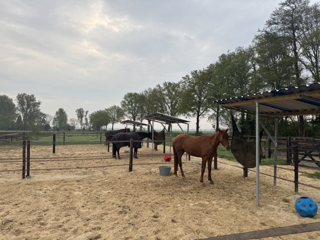 Je hebt bij mij de mogelijkheid om je paard 24/7 buiten te zetten in een eigen paddock. Hierin zit een schuilmogelijkheid en heeft hij onbeperkt hooi. Het is ook mogelijk om je paard overdag in de paddock/wei te zetten en ’s avonds op stal.